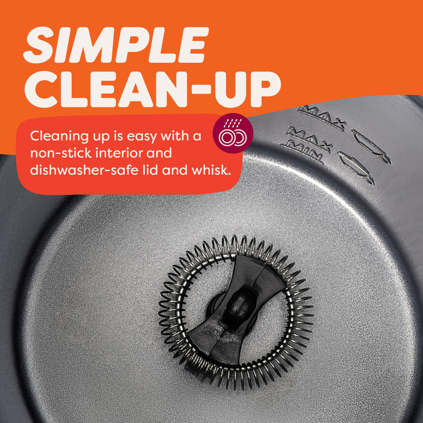 Quick Cleanup: No more fighting about who has to do the dishes. The dishwasher-safe lid and whisk make clean-up a breeze.