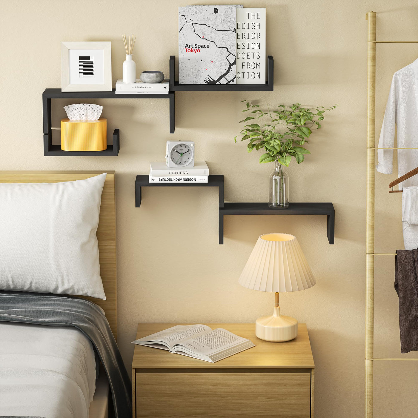 Multiple Display Options:These shelves set of 5 offer reversible installation and flexible arrangement options in different configurations like 2+2+1, 2+3, 3+2. Created to suit your diverse needs and preferences, these shelves enable you to personalize your space, unleash your creativity, and optimize functionality.